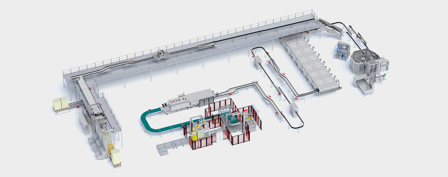 De-palletizerAutomatic depalletizing of the whole stack of empty cans.