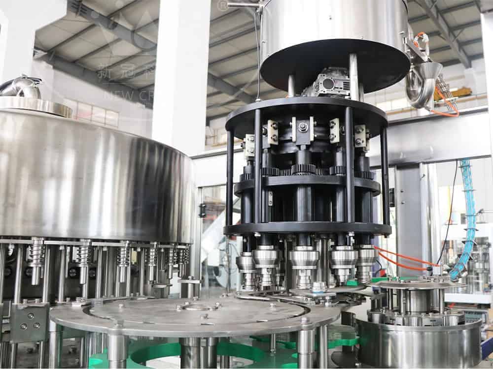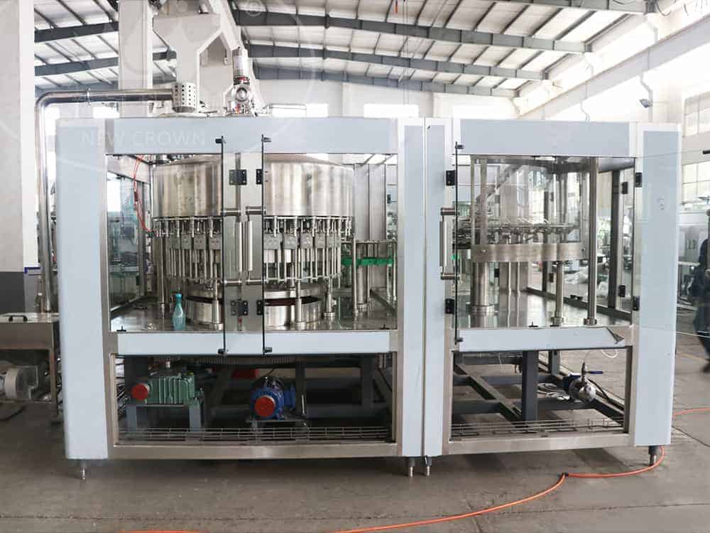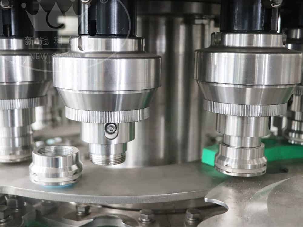 Our newly designed CGF serious monoblcok water filling machine is designed for plastic bottle filling, it can suit for PET bottle size between 150ml to 2000ml, can customzied to maximum of 3000ml. Genus design of capping design makes different screw cap change into one simple easy torch. On machine surface is only leaving 3 points of bearing support point which makes drainage so easy and without any dirt stain. A11 bearing have water proof sealing to protect it from getting rust.