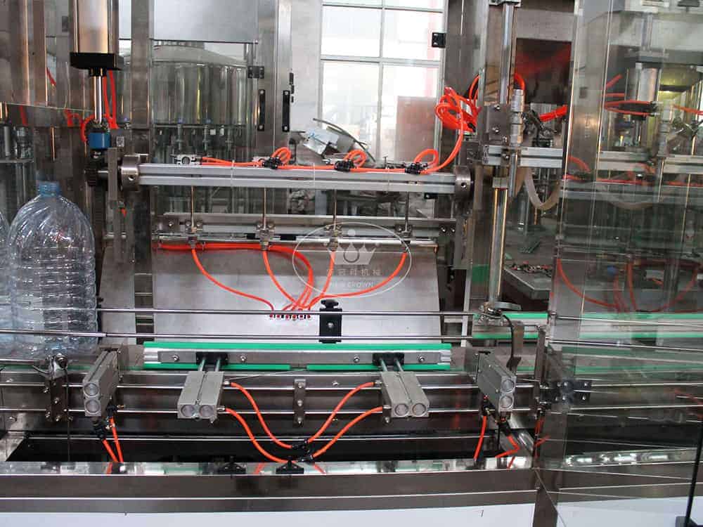 Water bottling system is another type of linear water filling machine. It is also the monoblock type filling machine. It includes bottle washing machine, water filling machine and plastic cap sealing machine. It is designed for big bottles like 3L, 5L, 7L, 10L plastic bottle.