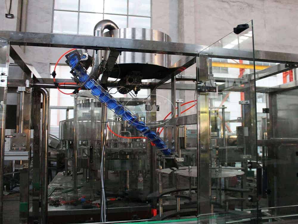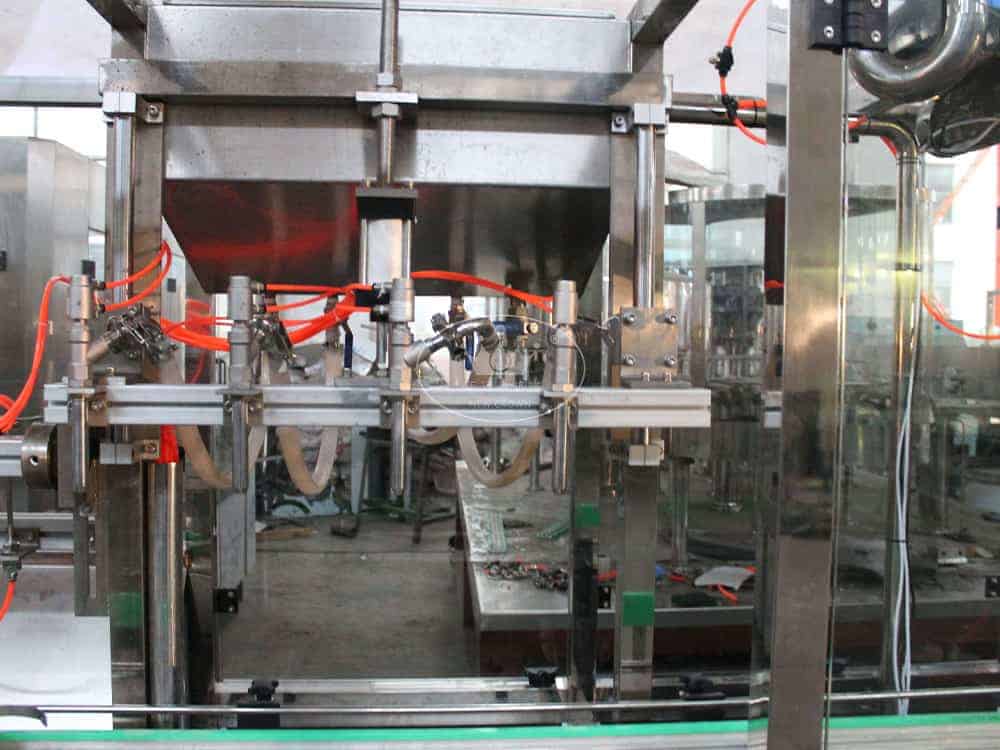 The working principle is to set the filling time in PLC, once the bottles arrive in filling station, bottles will be stopped and start  filling until time’s up.