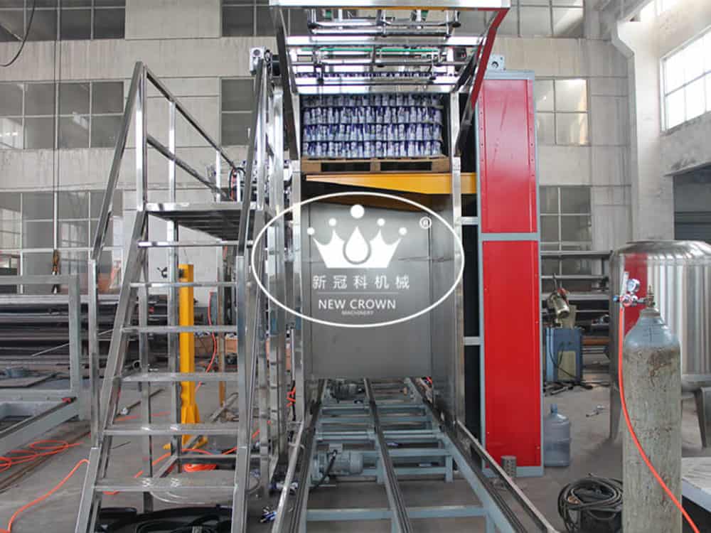 Automatic can/bottle de-palletizer depalletizing machine is designed for de-palletizing of cans and bottles. which will greatly save manpower.