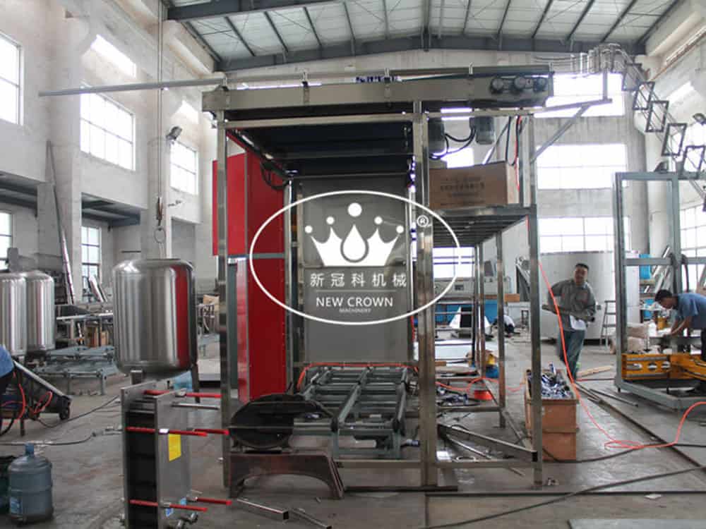 Work by forklift will fold full pallet on the pallet conveyor, conveyor then will to host the pallet lift tables. Pallet lifting platform is the empty cans of pallet after will locate in sent to the discharge tank height, when after unloading the empty cans, then puts the empty pallet fall on the conveyor. All the rise and fall of action by the elevator system control device, and can adjust the speed of rising or falling alone, to meet the operational needs. Discharge empty cans is pushed by cylinder device cans, sky can sent to discharge tank height sensors in place after tank cylinder began to press, can push the whole layer of empty cans to net on the conveyor, and then return to prepare position, will continue to the next layer out. After unloading the empty cans empty pallet, by empty pallet conveyor transferred to empty pallet vertebral product, then on the stack to a certain height, reoccupy forklift pallet will be moved out.