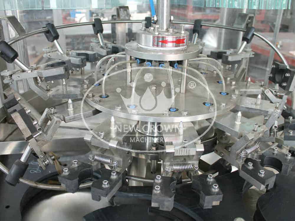 1. Spring cramps are used in the bottle washing process. The empty bottles can be turned over 180~ along the conveying rail. There are two times of internal and external washing, the efficiency of bottle washing is high.