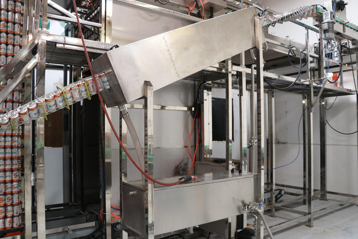 - The machine consists of tunnel, slide and spray device and other components; Empty cans into at the upper part of the box and output at the lower part.