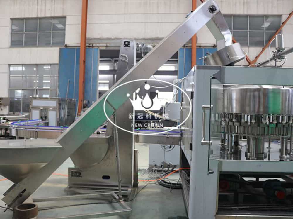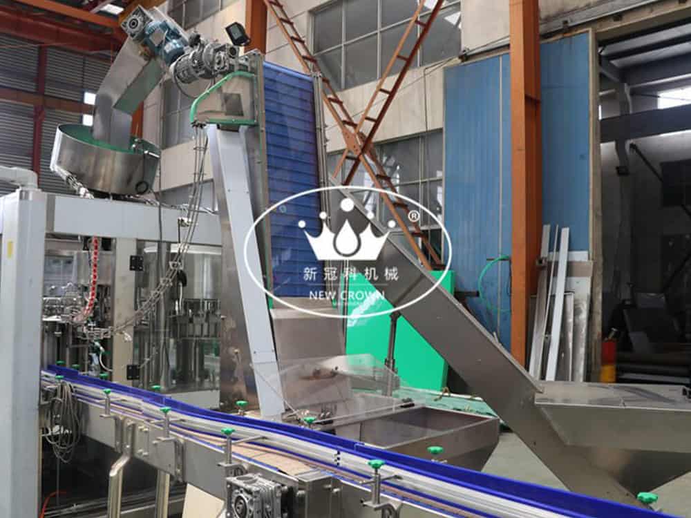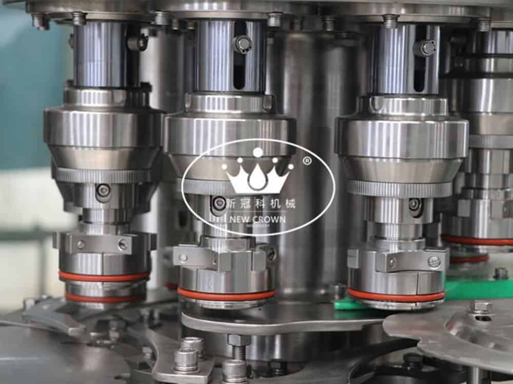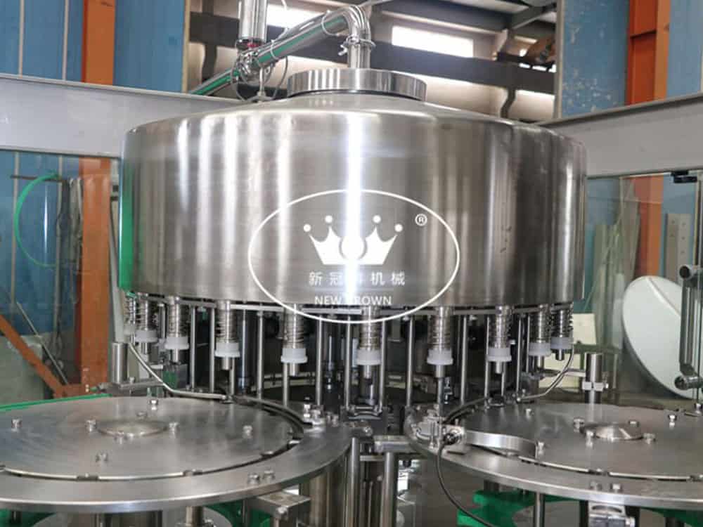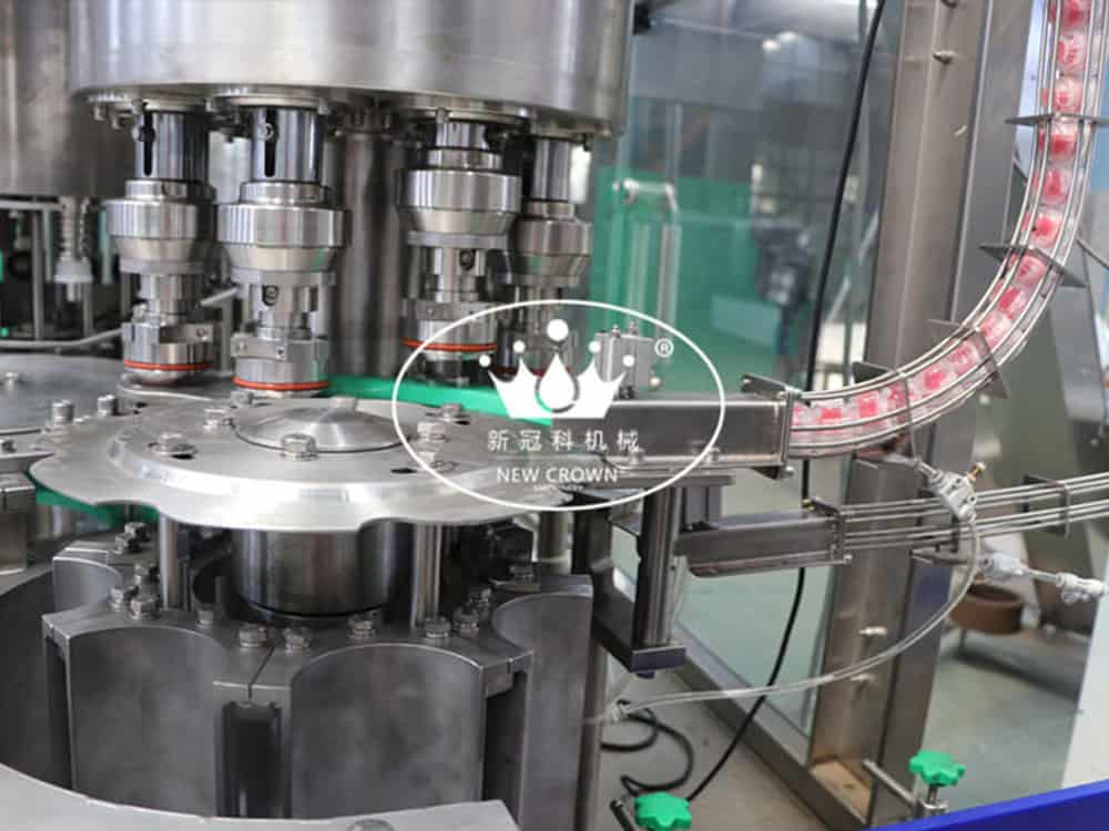 Monoblock means the filling machine integrates washing machine, filling machine and capping machine in one frame. The driving system will be transmitted step by step which makes the speed more stable.