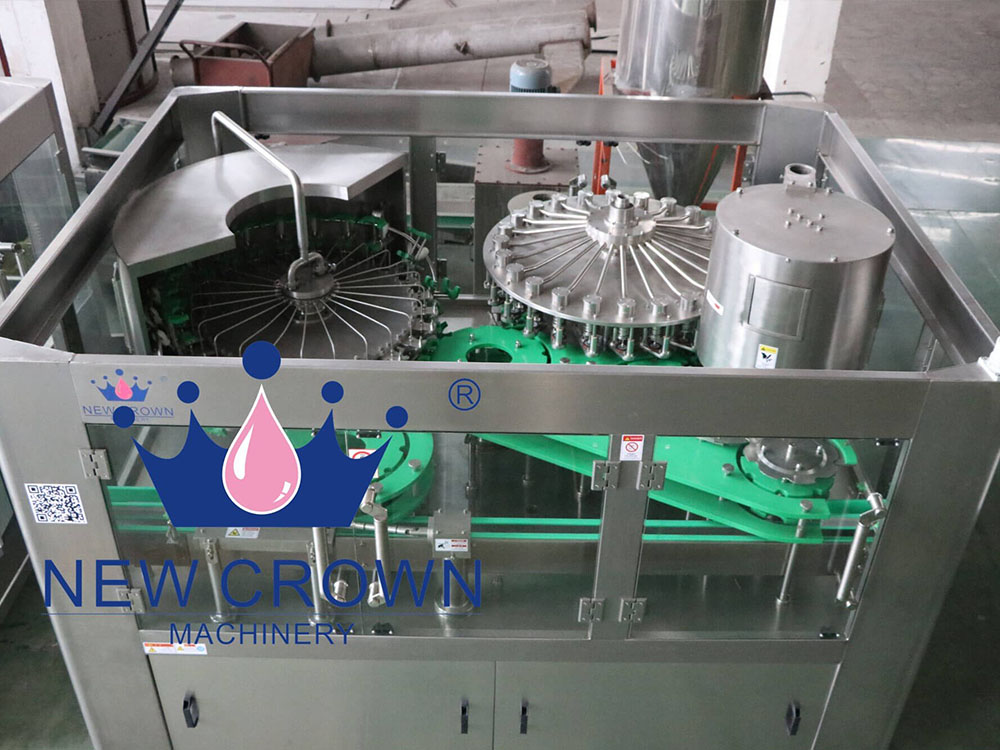 – The machine is 3 in 1 or 4 in 1 filling machine, including bottle (two step rinsing) rinsing, juice filling and bottle capping;