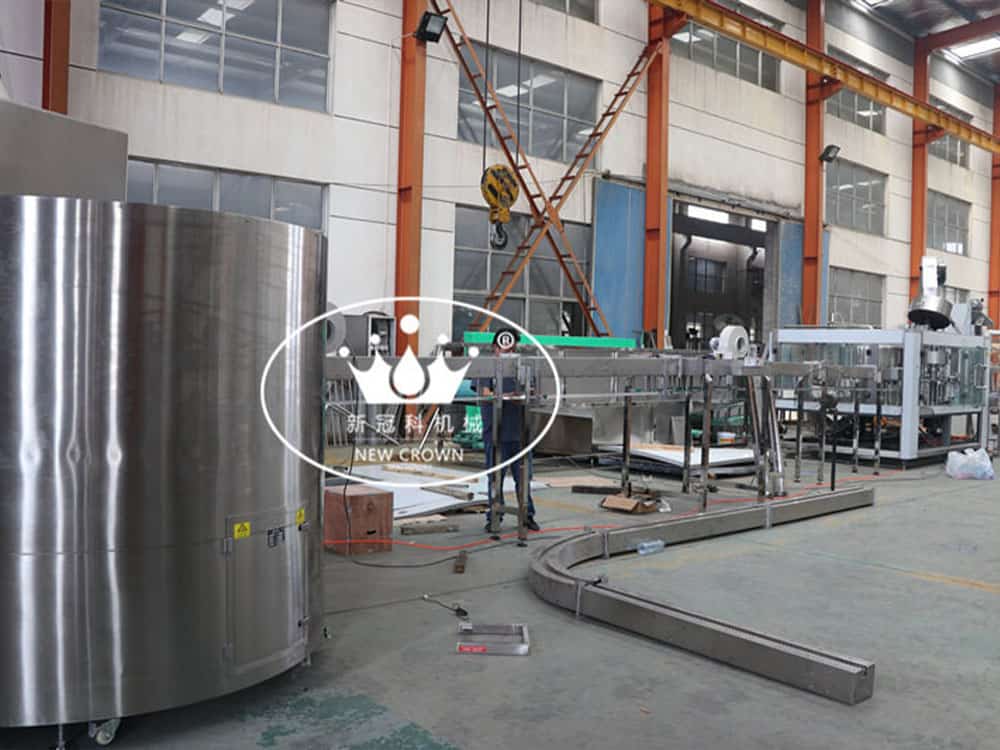 There is air conveyor connected with the bottle unscrambler and filling machine to form an automatic production line. Different bottles can be used in the bottle unscrambler by changing the bottle moulds.