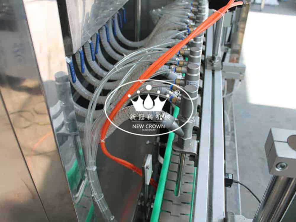 The filling head is made according to customer’s capacity and container volume, this model is with 8 head for filling.