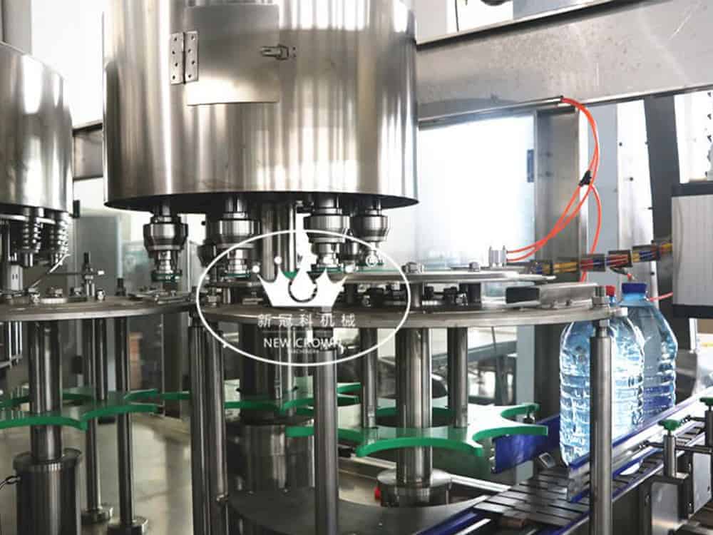 Water bottling machine integrates washing machine, filling machine and capping machine in one frame. The water bottling machine driving system will be transmitted step by step which makes the speed more stable.