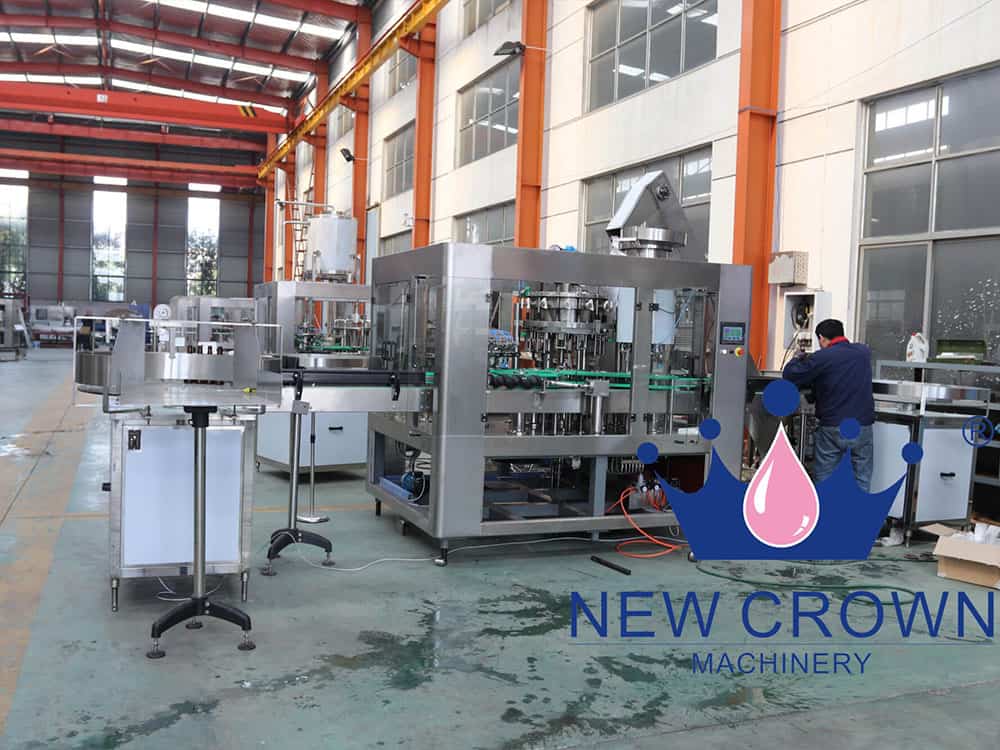 تستخدم آلة تعبئة زجاجة البيرة هذه 3 في 1 وحدة لإنتاج البيرة المعبأة في زجاجات زجاجية مع غطاء تاج.