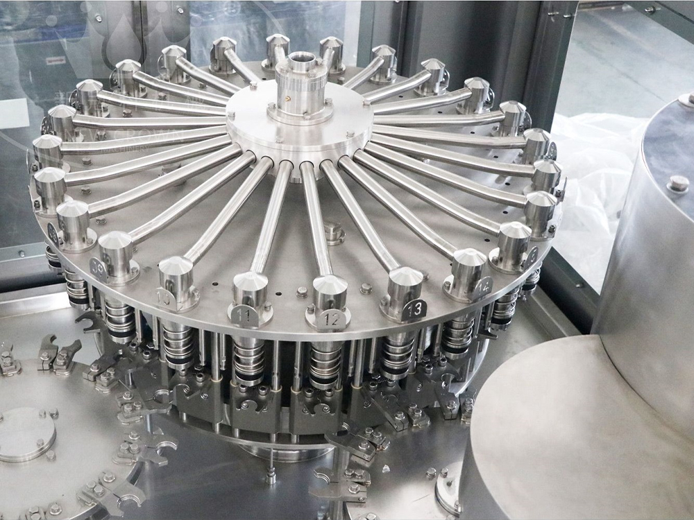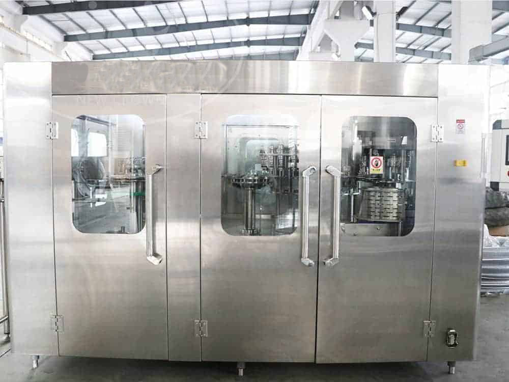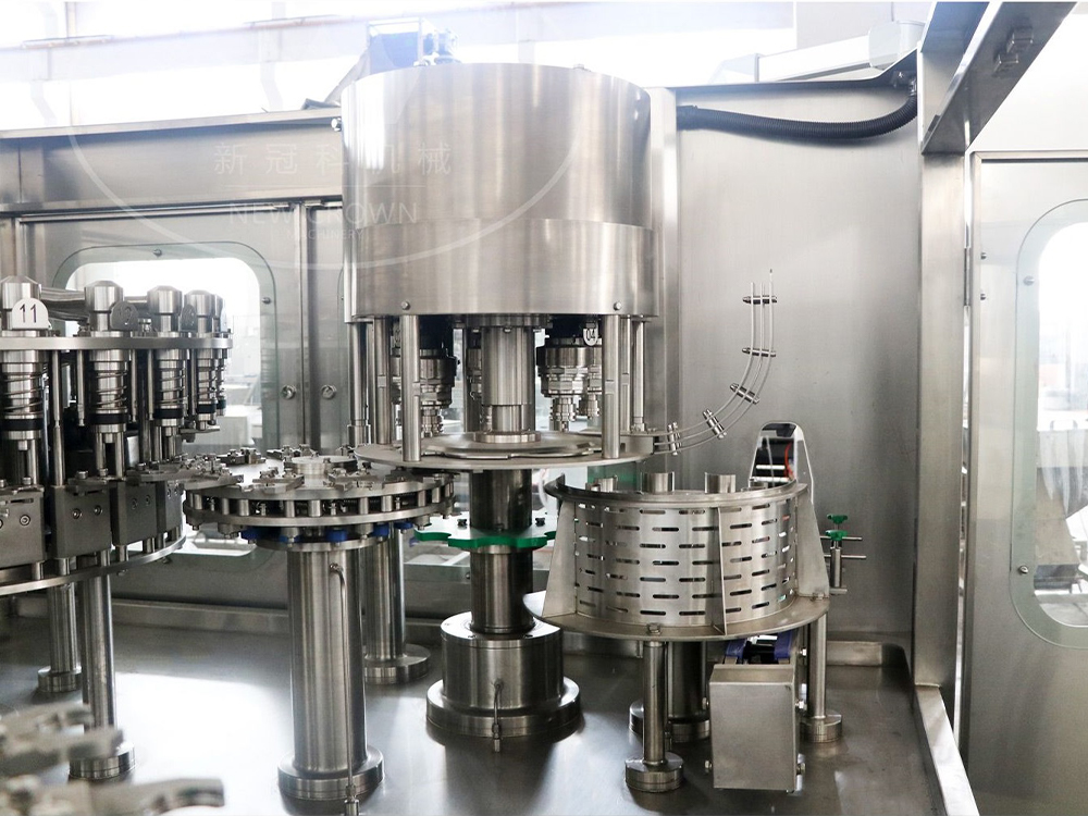 Our newly designed CGF serious monoblcok water filling machine is designed for plastic bottle filling, it can suit for PET bottle size between 150ml to 2000ml, can customzied to maximum of 3000ml. Genus design of capping design makes different screw cap change into one simple easy torch. On machine surface is only leaving 3 points of bearing support point which makes drainage so easy and without any dirt stain. A11 bearing have water proof sealing to protect it from getting rust.