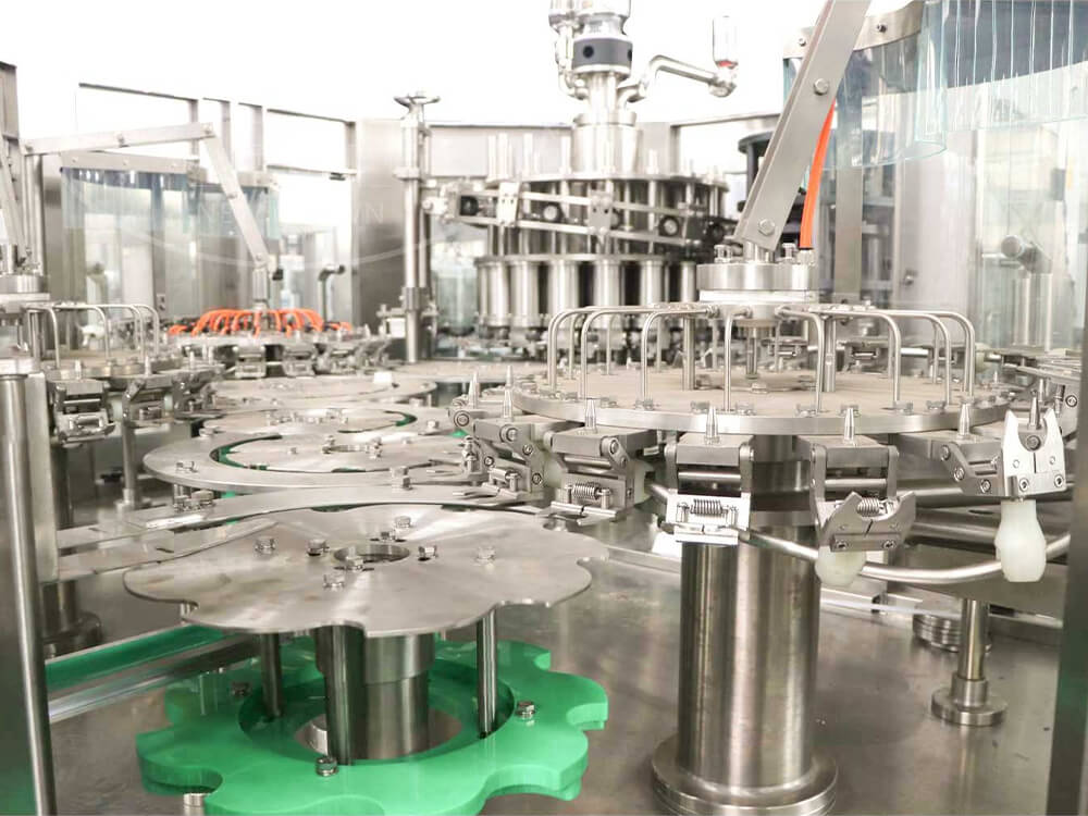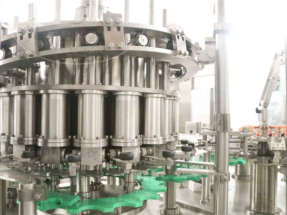 Our newly designed CGF serious monoblcok water filling machine is designed for plastic bottle filling, it can suit for PET bottle size between 150ml to 2000ml, can customzied to maximum of 3000ml. Genus design of capping design makes different screw cap change into one simple easy torch. On machine surface is only leaving 3 points of bearing support point which makes drainage so easy and without any dirt stain. A11 bearing have water proof sealing to protect it from getting rust.