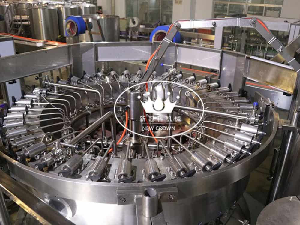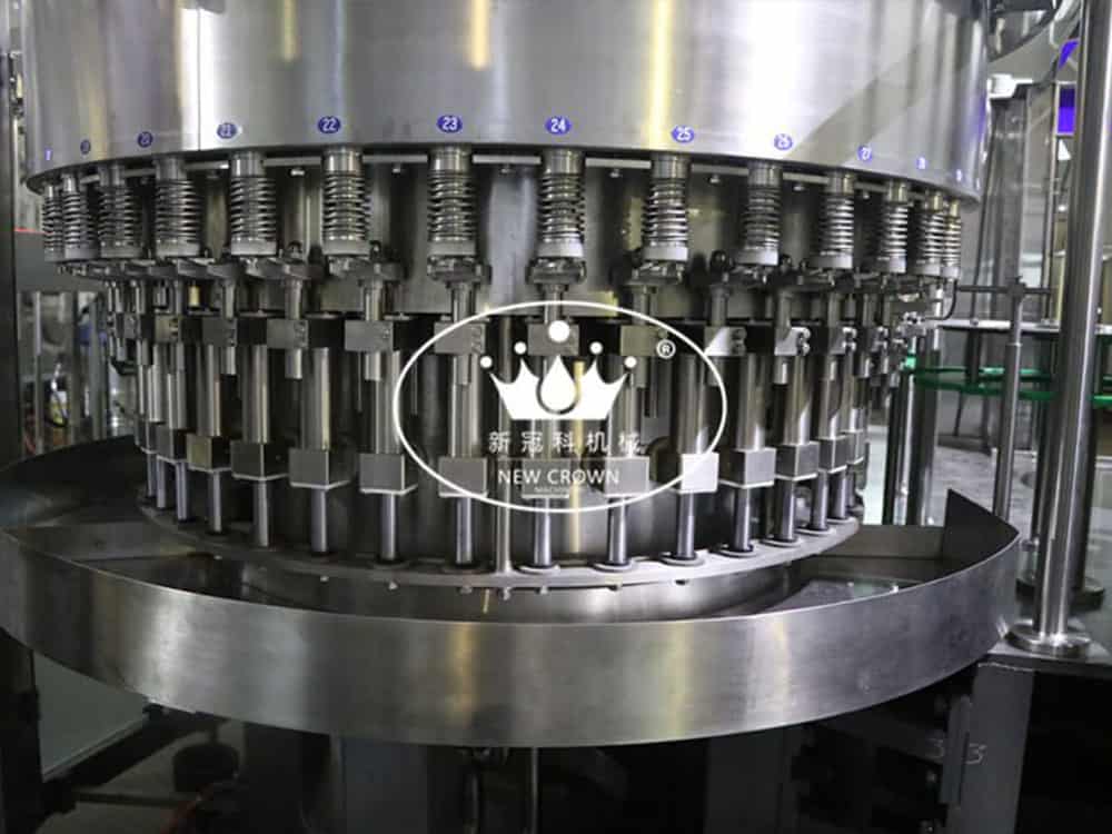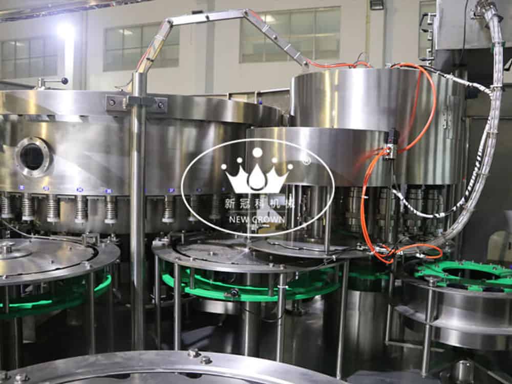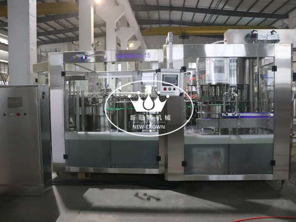Monoblock means the filling machine integrates washing machine, filling machine and capping machine in one frame. The driving system will be transmitted step by step which makes the speed more stable.