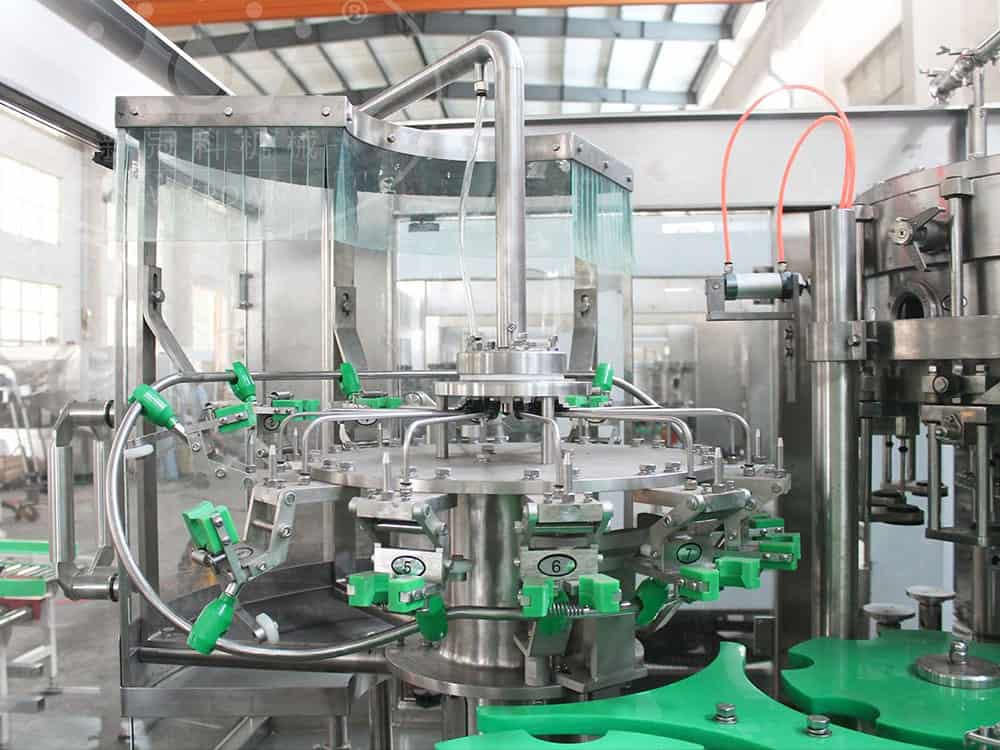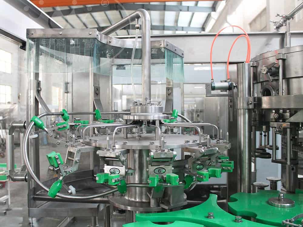 Our newly designed DCGF serious monoblcok carbonated drink filling machine is designed for bottle filling, it can suit for PET bottle and glass bottle size between 150ml to 2000ml, can customzied to maximum of 3000ml. Genus design of capping design makes different screw cap change into one simple easy torch. On machine surface is only leaving 3 points of bearing support point which makes drainage so easy and without any dirt stain. A11 bearing have water proof sealing to protect it from getting rust.