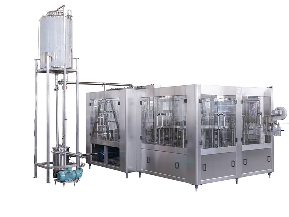 Our newly designed CGF serious monoblcok water filling machine is designed for plastic bottle filling, it can suit for PET bottle size between 150ml to 2000ml, can customzied to maximum of 3000ml. Genus design of capping design makes different screw cap change into one simple easy torch. On machine surface is only leaving 3 points of bearing support point which makes drainage so easy and without any dirt stain. A11 bearing have water proof sealing to protect it from getting rust.
