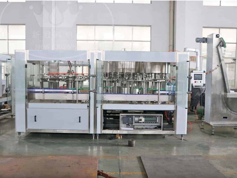 Our newly designed CGF serious monoblcok water filling machine is designed for plastic bottle filling, it can suit for PET bottle size between 150ml to 2000ml, can customzied to maximum of 3000ml. Genus design of capping design makes different screw cap change into one simple easy torch. On machine surface is only leaving 3 points of bearing support point which makes drainage so easy and without any dirt stain. A11 bearing have water proof sealing to protect it from getting rust.