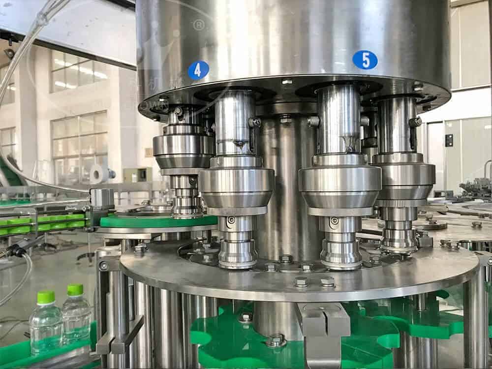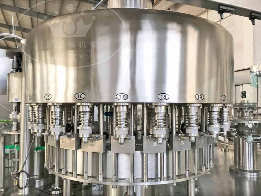 Our newly designed CGF serious monoblcok water filling machine is designed for plastic bottle filling, it can suit for PET bottle size between 150ml to 2000ml, can customzied to maximum of 3000ml. Genus design of capping design makes different screw cap change into one simple easy torch. On machine surface is only leaving 3 points of bearing support point which makes drainage so easy and without any dirt stain. A11 bearing have water proof sealing to protect it from getting rust.