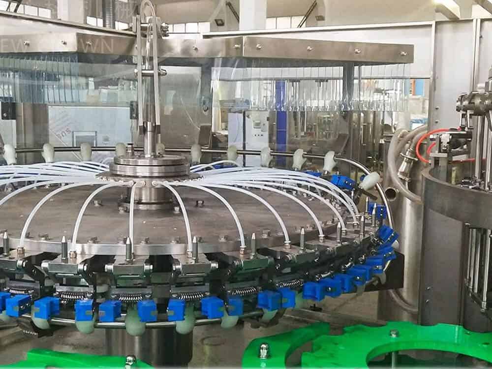 Our newly designed DCGF serious monoblcok carbonated drink filling machine is designed for bottle filling, it can suit for PET bottle and glass bottle size between 150ml to 2000ml, can customzied to maximum of 3000ml. Genus design of capping design makes different screw cap change into one simple easy torch. On machine surface is only leaving 3 points of bearing support point which makes drainage so easy and without any dirt stain. A11 bearing have water proof sealing to protect it from getting rust.