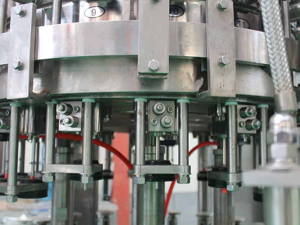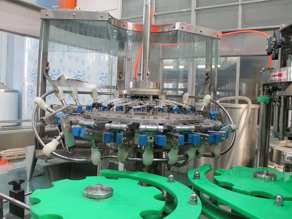 ⑤, After filling process finishing, before filling valves leaving bottles, air exhausting valve exhaust extra gas, then filling valves leave bottle neck, filling process finishes.