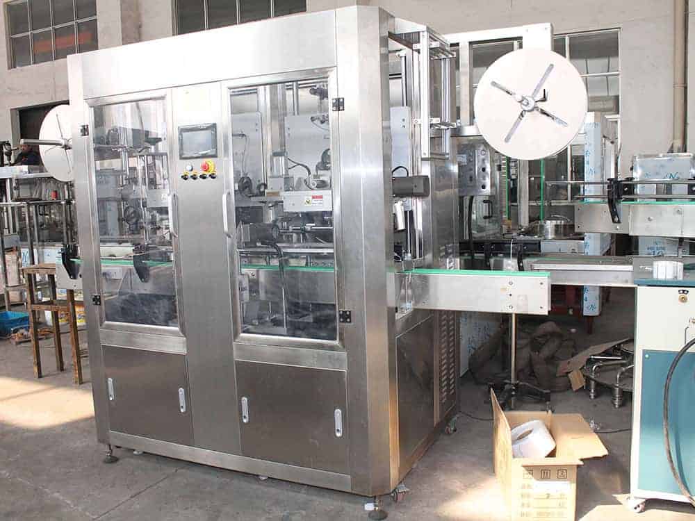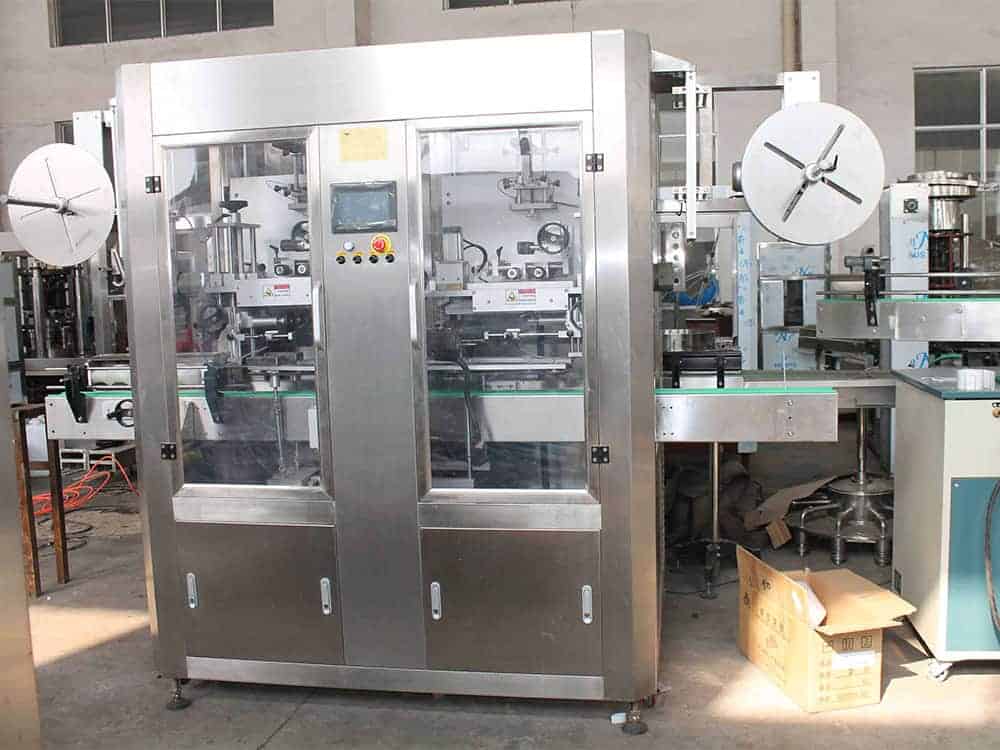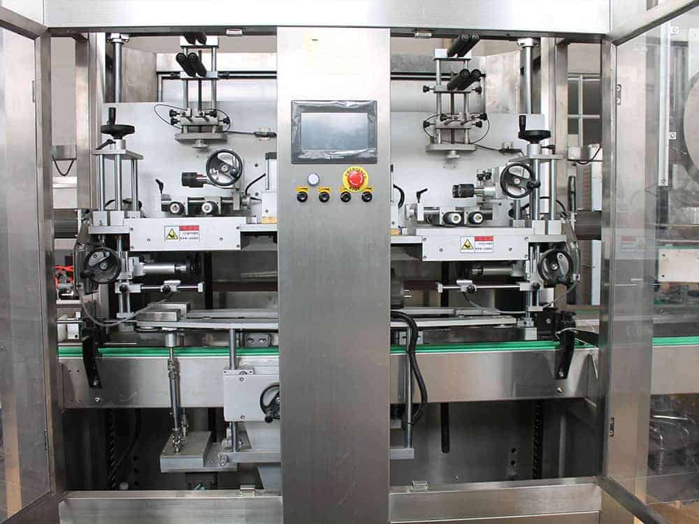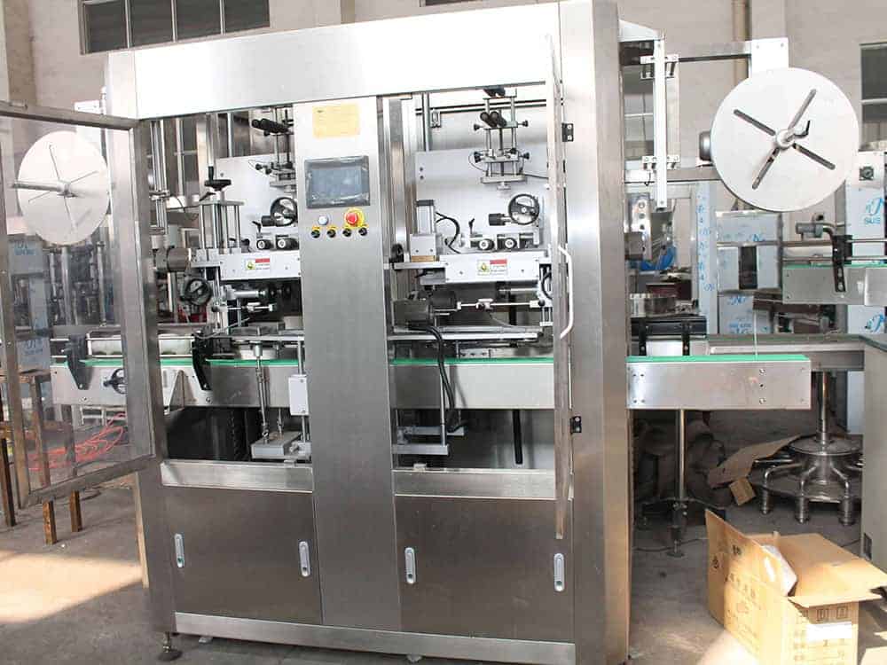 This double head sleeve labeling machine is mainly used to label the bottle body or bottle neck or bottle cap with two positions.