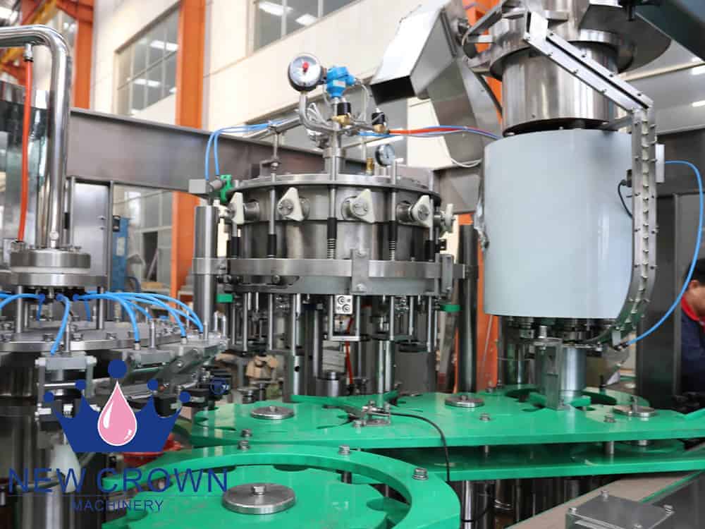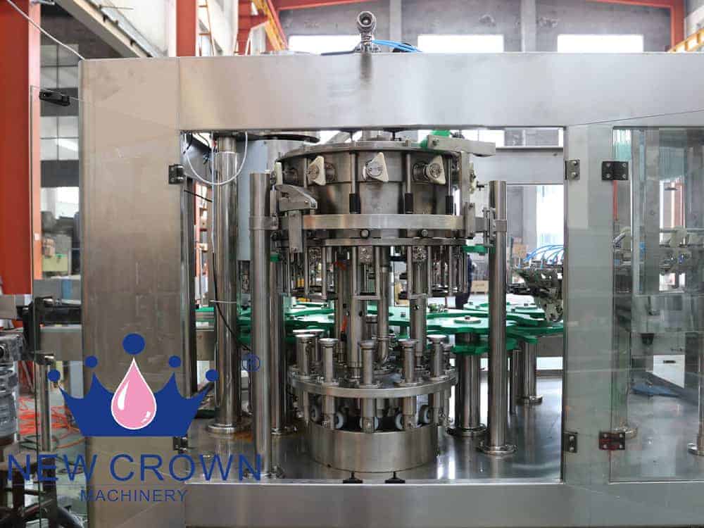 ⑤, After filling process finishing, before filling valves leaving bottles, air exhausting valve exhaust extra gas, then filling valves leave bottle neck, filling process finishes.