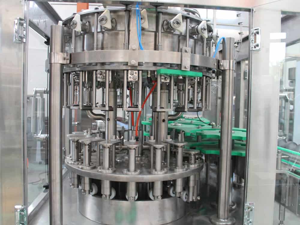 ⑤, After filling process finishing, before filling valves leaving bottles, air exhausting valve exhaust extra gas, then filling valves leave bottle neck, filling process finishes.