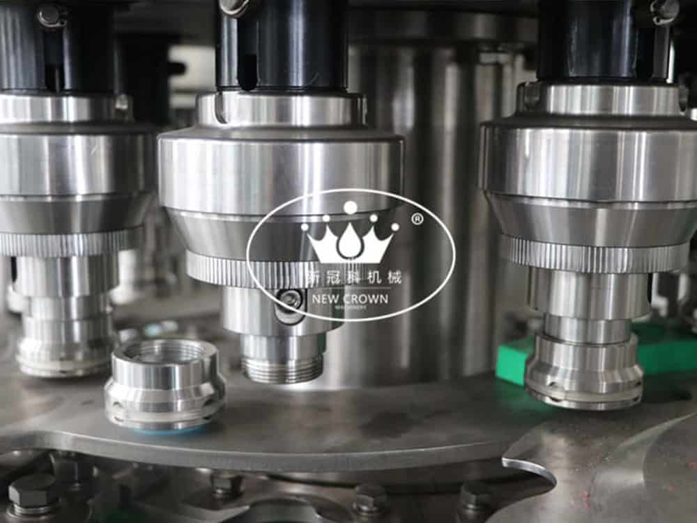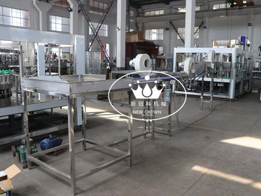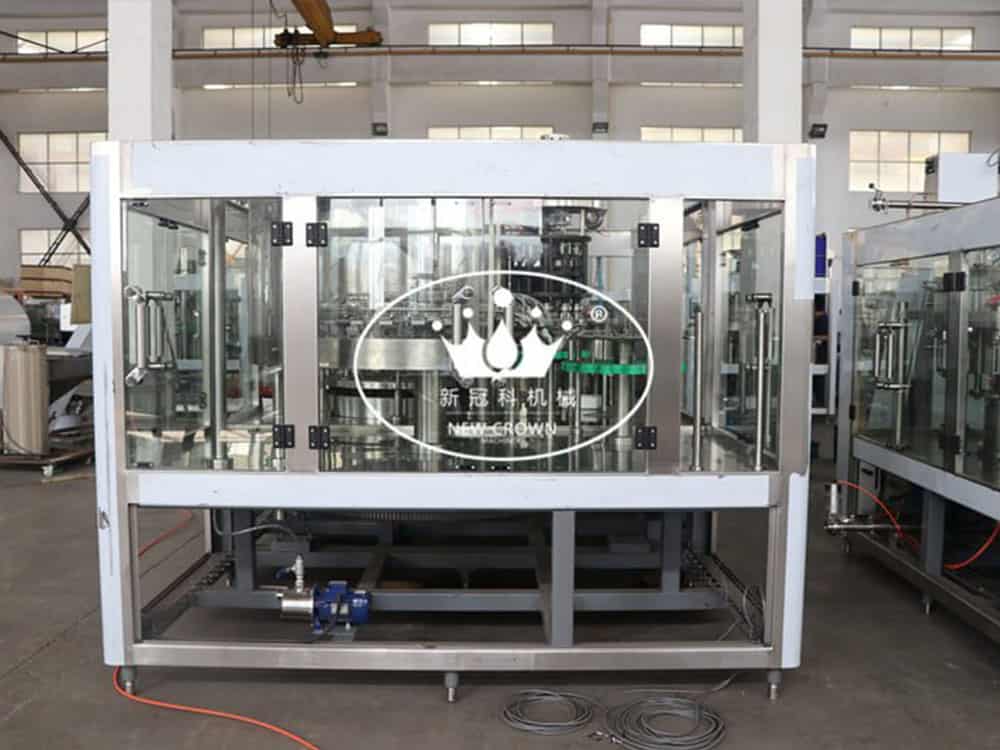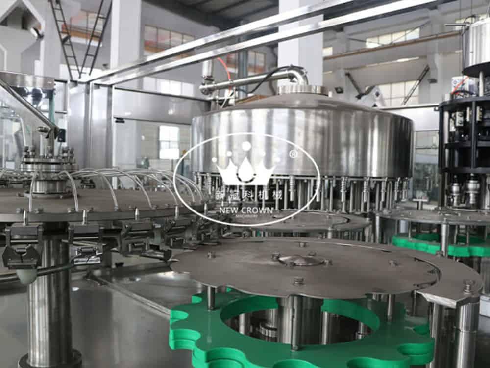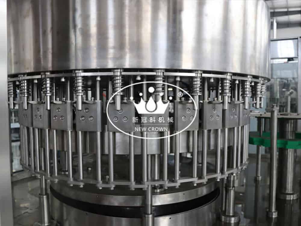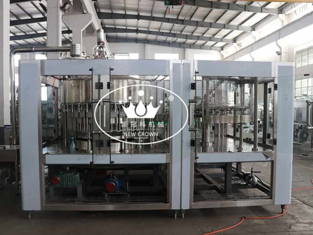 Monoblock means the filling machine integrates washing machine, filling machine and capping machine in one frame. The driving system will be transmitted step by step which makes the speed more stable.