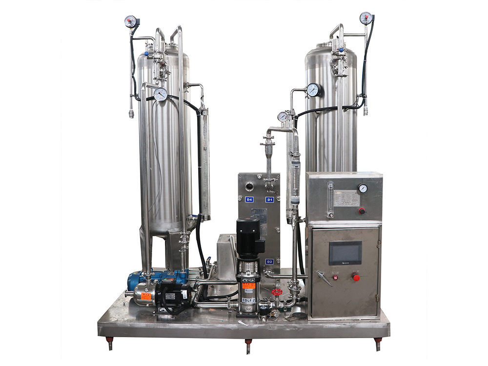 This model is suitable for the production of various carbonated beverages and fruity carbonated beverages containing CO2, and can easily adjust the production capacity and the mixing ratio of water and syrup.