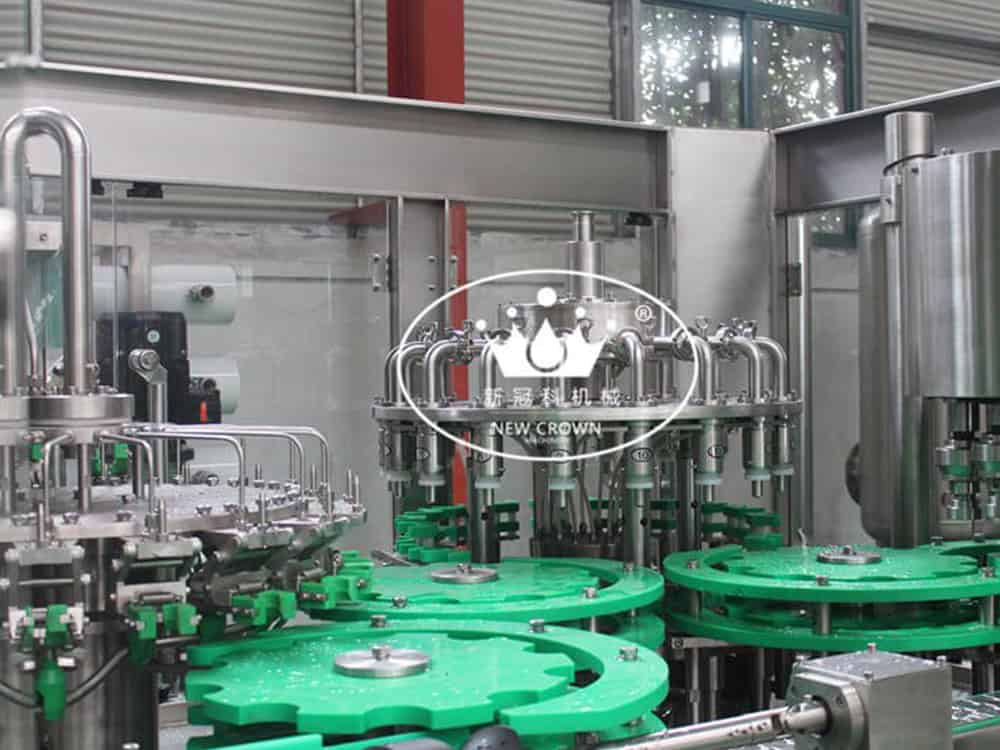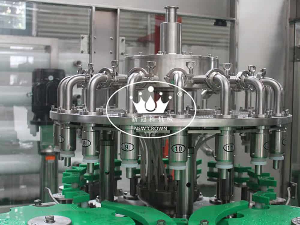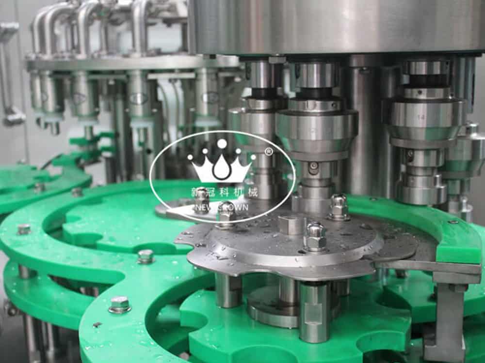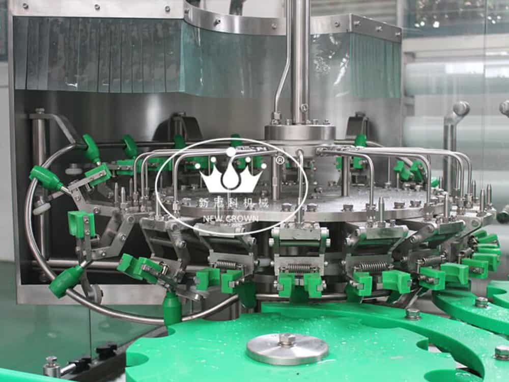 3) Spring cramps of the bottle juice filling machine are used in the bottle washing process. The empty bottles can be turned over 180~ along the conveying rail. There are two times of internal and external washing, the efficiency of bottle washing is high.