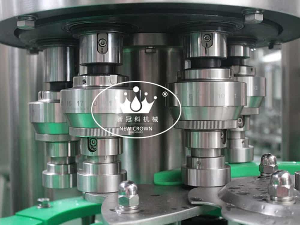 5) The whole machine is controlled by PLC with touch-screen as the human-machine interface. The amount of the drinks in the storage tank can be controlled automatically. The filling and capping will be stopped automatically when there is no bottle. When bottles are cramped wrongly or when caps are not available, the machine can be stopped automatically.