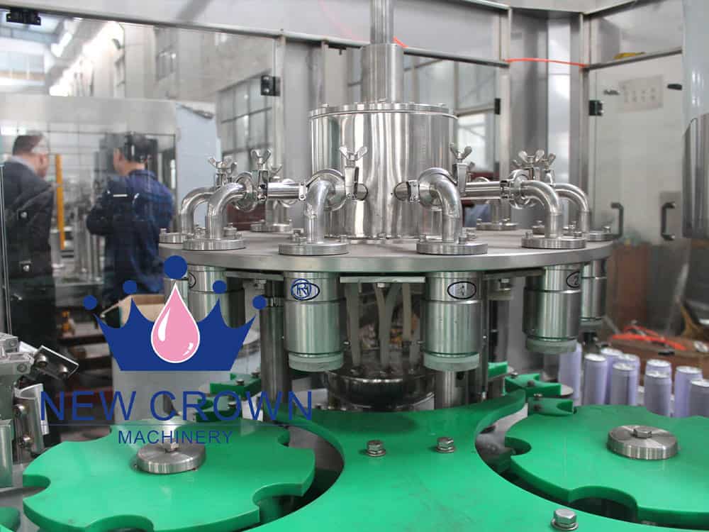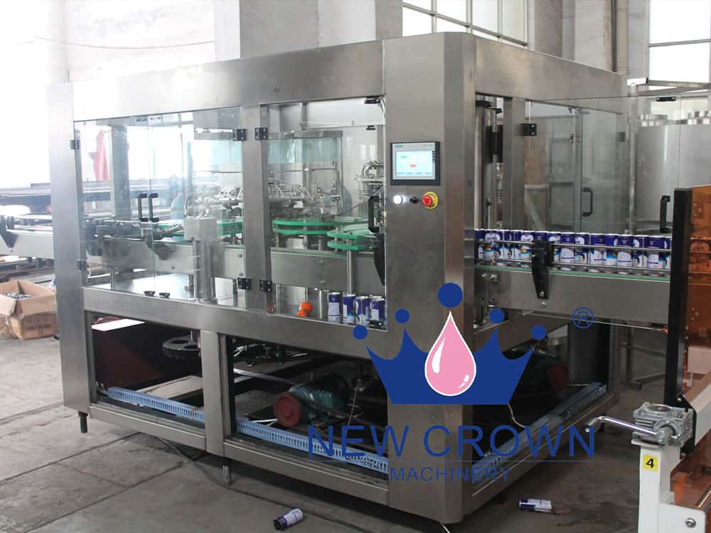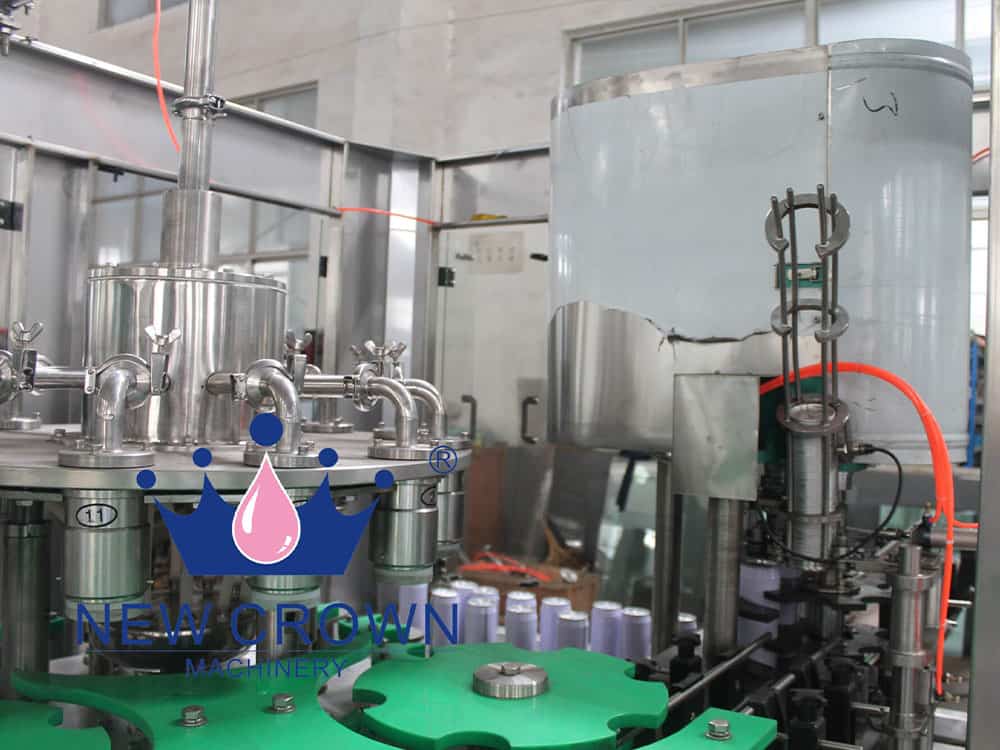 Hydrogen Water Metal Tin Can Filling Machine is monoblock 3 in 1 can water canning machine is mainly used to pure water, mineral water and some no-gas drinks into tin can. Monoblock means the water canning machine integrates washing machine, filling machine and capping machine in one frame. The driving system will be transmitted step by step which makes the speed more stable.
