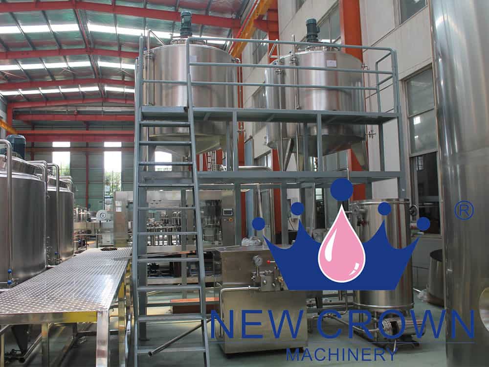 Including: Steam boiler (prepared by customer), hot water system, jacket high shear emulsification tank (high speed), jacket beverage mixing tank (medium speed), double filter, high pressure homogenizer, plate sterilizer, insulation balance tank, drink pump.