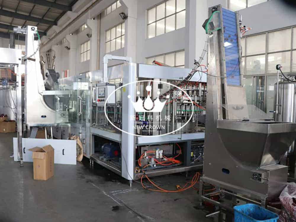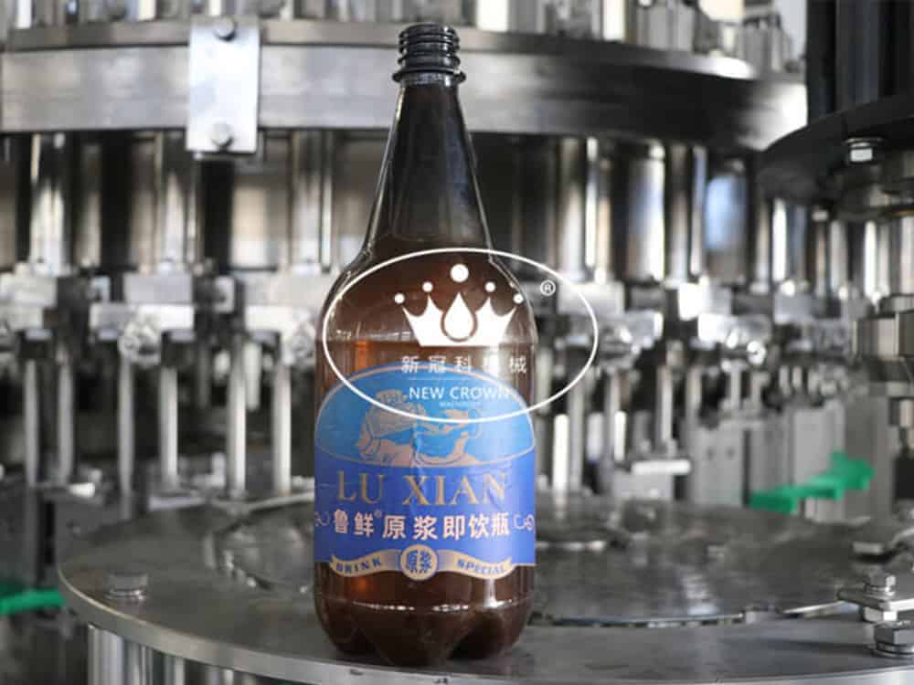 This Beer Bottling Machine Wash-filling-capping 3-in-1unit is used to produce pet bottled beer with screw cap.