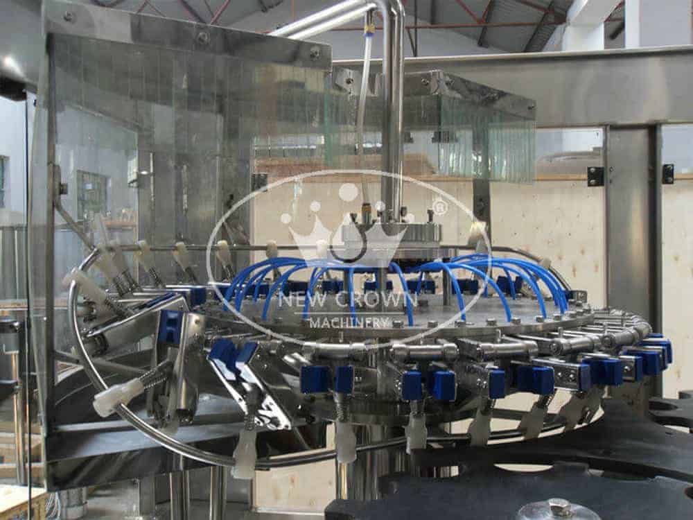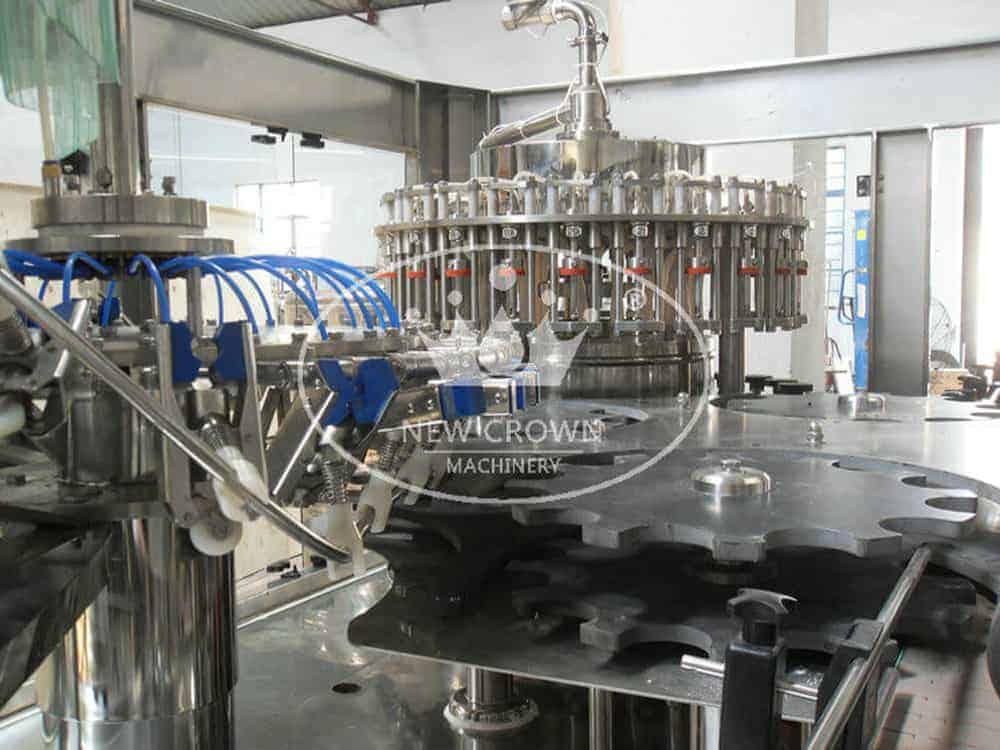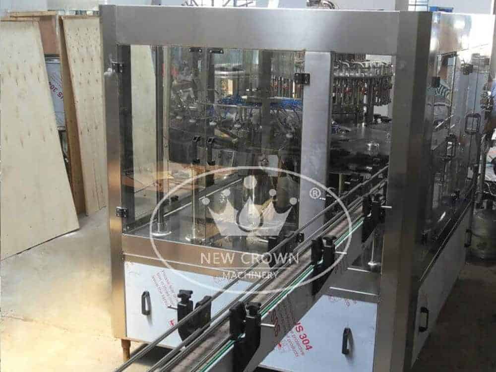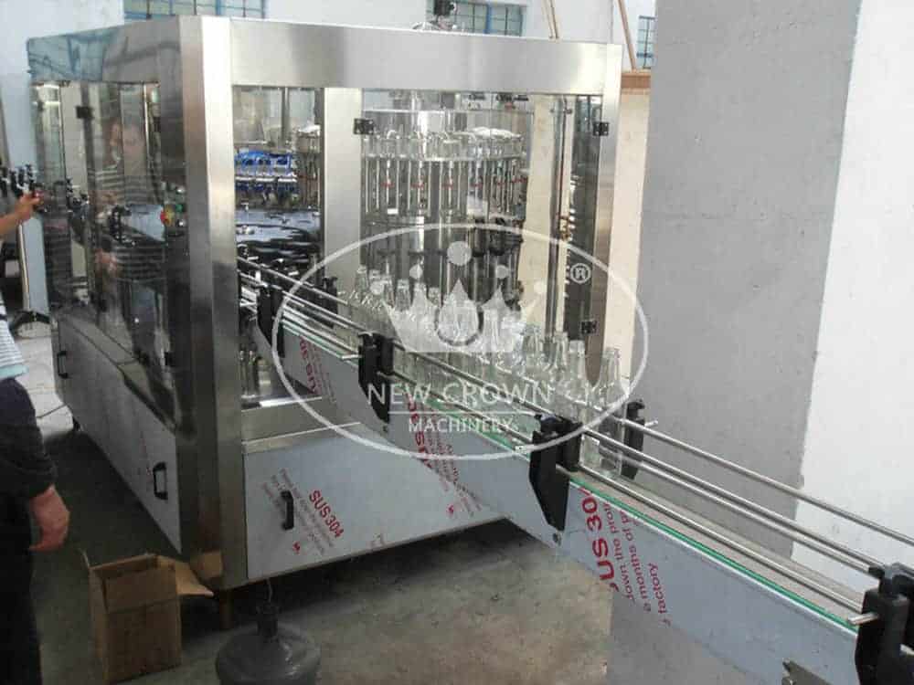 5)The empty glass bottle is onveyed on the conveyor,then goes through the washing and filling part, goes out through the conveyor.