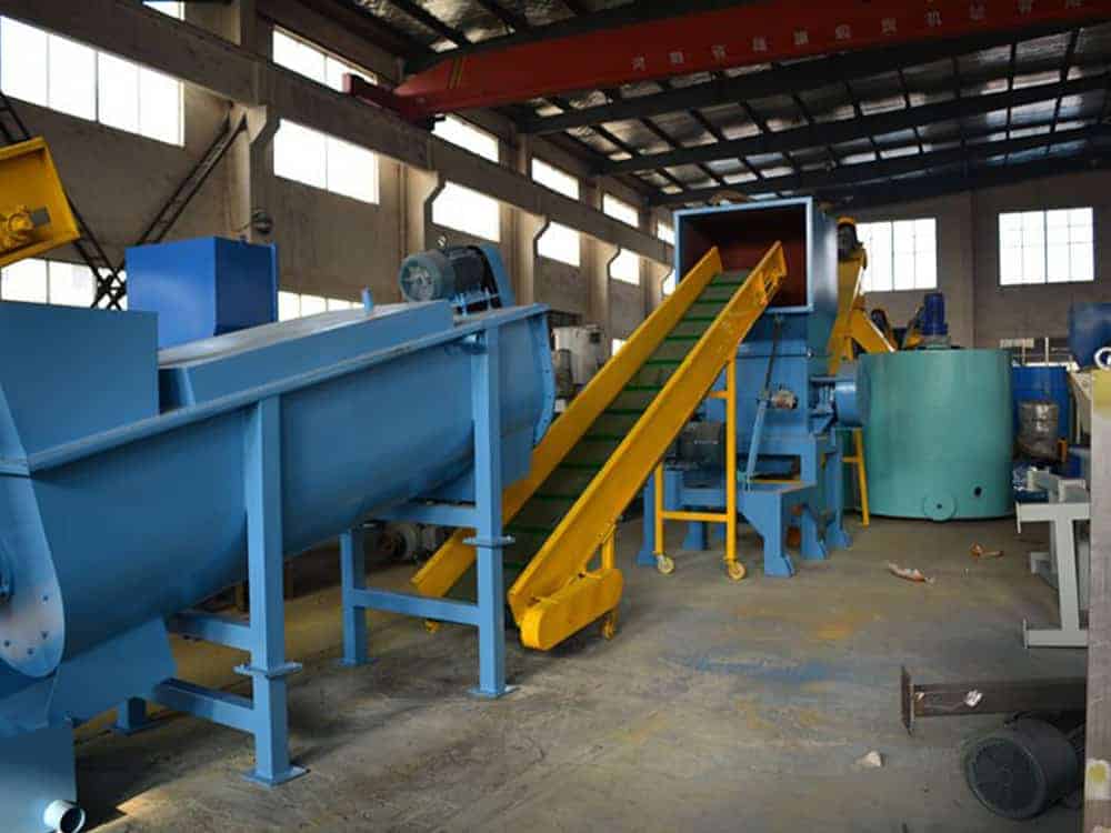 Waste PET plastic bottle hot washing crushing recycling machine is design for recycling waste plastic bottles. including metal detecting–labeling-crushing–hot washing–friction washing–drying.